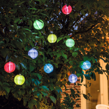 Als het buiten donker wordt, gaat in deze sfeerlampen het licht aan. Deze solar LED strengverlichting met kleine lampionnetjes in allerlei kleurlijke kleuren is een gezellige toevoeging voor elke tuin of balkon.