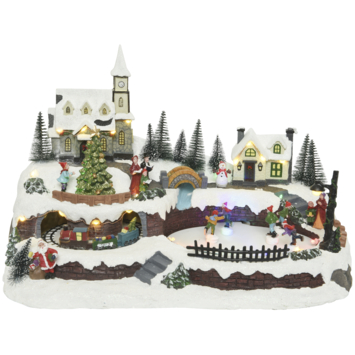 Tijdens de feestdagen mag een kerstdorp zeker niet ontbreken in je huis. Dit winterse kerstdorp met feestelijke gekleurde verlichting, muziek en beweging brengt sfeer in huis. Zo heb je een trein dat rondrijdt en schaatsende kinderen.