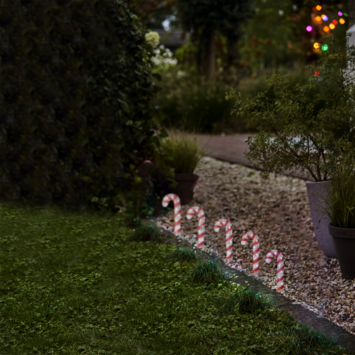 Deze lichtgevende zuurstokken brengen vrolijkheid in de tuin. Deze set bestaat uit 5 zuurstokken die aan elkaar gekoppeld zijn en met 1 stekker aan te sluiten zijn. Dankzij hun rode en witte kleur passen ze perfect in een traditionele kerstsfeer! De acryl zuurstokken zijn voorzien van 80 LED sfeerlichtjes. Je kan er dus zowel overdag als 's nachts van genieten. Verspreid ze in de tuin of zet ze mooi langs het pad. Ze zijn een echte blikvanger!