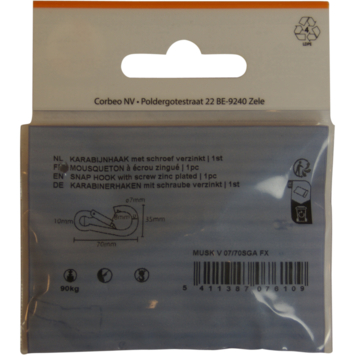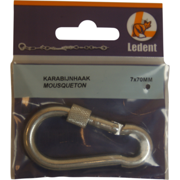 Ledent karabijnhaak met moer verzinkt 70 mm