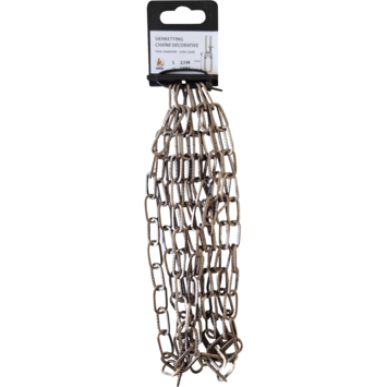 De ketting oud koper 21x19mm 2,5 meter heeft een oud koperen kleur en glanst mooi. Hierdoor kan de ketting voor diverse decoratieve doeleinden gebruikt worden. De ketting is 2,5 meter lang en heeft een maximale draagkracht van 6 kilogram. Hang er bijvoorbeeld een lamp aan of gebruik het voor het ophangen van hangpotten. De structuur van de schakels zorgt voor een speciaal effect waarin licht en schaduw elkaar afwisselen. Kortom, deze sierketting is op vele manieren te gebruiken.