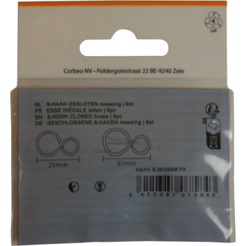 Op zoek naar een stevige S-haak? Deze S-haak is gemaakt van metaal en heeft een vermessingde afwerking. De haak kan zowel binnen als buiten gebruikt worden.