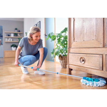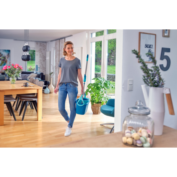 De Leifheit Clean Twist Disc mop Ergo dweilset is jouw nieuwe assistent bij het reinigen van de vloeren. Dankzij het praktische Clean Twist-systeem wring je de dweil eenvoudig en krachtig uit, zonder te hoeven bukken. Dit ergonomische ontwerp maakt het mogelijk om zelfs de moeilijkste hoeken moeiteloos te bereiken. De microvezeldoeken zijn speciaal ontwikkeld om vuil en water optimaal op te nemen, waardoor je vloeren stralend schoon worden. Of je nu laminaat, tegels of vinyl hebt, deze dweilset is ideaal voor elke ondergrond. Maak schoonmaken aangenamer en efficiënter met deze gebruiksvriendelijke set. Met de Leifheit Clean Twist Disc mop breng je kwaliteit in huis, zodat je meer tijd overhoudt voor de dingen die je echt leuk vindt.
