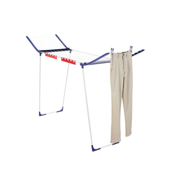 Droogrek Pegasus 180 Solid Black voldoet aan alle eisen die je aan een droogrek kunt stellen. Dankzij de parallelle benen staat dit droogrek uiterst stevig en stabiel, binnen en buiten. De drooglengte bedraagt maar liefst 18 meter en biedt ruimte voor ca. twee wasmachineladingen. Op de uitklapbare 105 cm hoge vleugels kunnen ook lange stukken wasgoed drogen, zoals badlakens of broeken, zonder over de grond te slepen. Als handig extraatje worden bij droogrek Pegasus 180 Solid Black twee handige houders voor klein wasgoed bijgeleverd. Daaraan hang je snel en simpel sokken, handdoekjes of slipjes op, zonder wasknijpers. Opzetten en inklappen van staand droogrek Pegasus 180 Solid Black gaat gemakkelijk en snel. Een speciale coating beschermt de zwart-antraciet droogstangen tegen roest. Uitstekende stabiliteit. Overtuigend hoge kwaliteit.