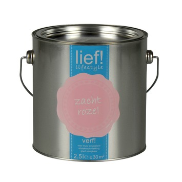 Met Lief! muurverf zacht roze 2,5 liter voorziet u iedere kinderkamer van een kleurrijke en gezellige sfeer. De watergedragen verf is met zorg en aandacht samengesteld. De muurverf is reukarm, droogt snel en is minder belastend voor het milieu. De verf is verkrijgbaar in verschillende kleuren en is daarom goed te combineren met producten zoals lief! behang, behangranden, stickers en raamdecoratie. De inhoudsmaat is 2,5 liter.