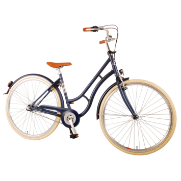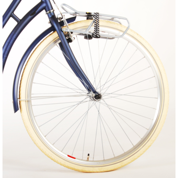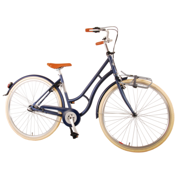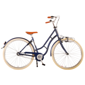 Volare Lifestyle tienerfiets 43 centimeter. Deze fiets, onderdeel van de prachtige Volare Lifestyle range, past perfect in de lifestyle van de hedendaagse tiener. Het moderne stalen frame van deze fiets heeft een toffe jeans blauwe kleur en op de voorbagagedrager kunnen alle spullen worden meegenomen. De handvaten zijn voor extra comfort gemaakt van Kraton, een heerlijk zacht rubber. Om vaart te maken heeft de fiets Shimano Nexus 3 versnellingen en om vaart te minderen beschikt de fiets over een handrem en een terugtraprem. Verder beschikt de fiets over een fietsbel en een fietsslot. De mooi gevormde spatborden houden al het opspattende vuil en vocht tegen. Om de fiets te parkeren heeft hij een fietsstandaard. Voor de veiligheid heeft de fiets verlichting aan de voorkant en aan de achterkant. De 28 inch banden en het frame van 43 centimeter hoog maken de fiets geschikt voor dames vanaf 12 jaar oud met een binnenbeenlengte tussen de 78 en 95 centimeter. De voordrager is afneembaar.