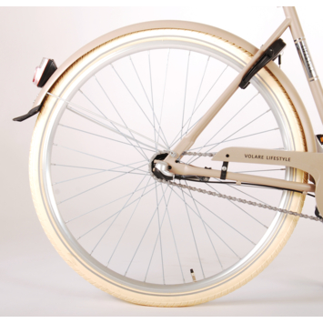 Volare Lifestyle tienerfiets 48 centimeter. Deze fiets, onderdeel van de prachtige Volare Lifestyle range, past perfect in de lifestyle van de hedendaagse tiener. Het moderne stalen frame van deze fiets heeft een toffe jeans blauwe kleur en op de voorbagagedrager kunnen alle spullen worden meegenomen. De handvaten zijn voor extra comfort gemaakt van Kraton, een heerlijk zacht rubber. Om vaart te maken heeft de fiets Shimano Nexus 3 versnellingen en om vaart te minderen beschikt de fiets over een handrem en een terugtraprem. Verder beschikt de fiets over een fietsbel en een fietsslot. De mooi gevormde spatborden houden al het opspattende vuil en vocht tegen. Om de fiets te parkeren heeft hij een fietsstandaard. Voor de veiligheid heeft de fiets verlichting aan de voorkant en aan de achterkant. De 28 inch banden en het frame van 48 centimeter hoog maken de fiets geschikt voor dames vanaf 12 jaar oud. De voordrager is afneembaar.