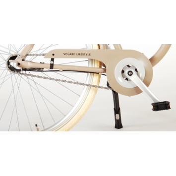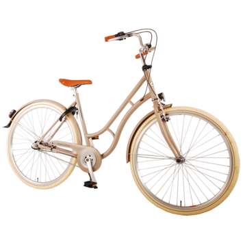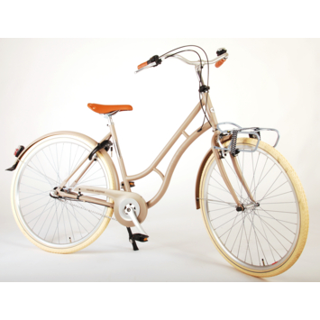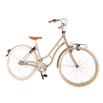 Volare Lifestyle tienerfiets 51 centimeter. Deze fiets, onderdeel van de prachtige Volare Lifestyle range, past perfect in de lifestyle van de hedendaagse tiener. Het moderne stalen frame van deze fiets heeft een toffe zandkleur en op de voorbagagedrager kunnen alle spullen worden meegenomen. De handvaten zijn voor extra comfort gemaakt van Kraton, een heerlijk zacht rubber. Om vaart te maken heeft de fiets Shimano Nexus 3 versnellingen en om vaart te minderen beschikt de fiets over een handrem en een terugtraprem. Verder beschikt de fiets over een fietsbel en een fietsslot. De mooi gevormde spatborden houden al het opspattende vuil en vocht tegen. Om de fiets te parkeren heeft hij een fietsstandaard. Voor de veiligheid heeft de fiets verlichting aan de voorkant en aan de achterkant. De 28 inch banden en het frame van 51 centimeter hoog maken de fiets geschikt voor dames vanaf 12 jaar oud met een binnenbeenlengte tussen de 84 en 101 centimeter. De voordrager is afneembaar.