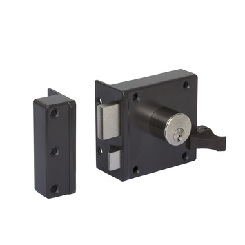 Het oplegslot is voorzien van het keurmerk van SKG** (Stichting Kwaliteit Gevelbouw). Het SKG keurmerk geeft aan dat het slot zwaar inbraakwerend is. De vaste binnen- en losse buitencilinders zijn vernikkeld. De slotkast en sluitkom zijn bruin gelakt.