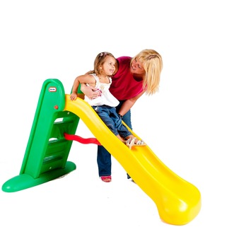 Deze grote Little Tikes glijbaan in geel-groene kleurstelling heeft een 150 cm lang glijvlak en een brede basis en traptreden voor extra stabiliteit en veiligheid. Makkelijk in te klappen en op te bergen. Dit speelgoed is geschikt voor kinderen van 2 tot 6 jaar.