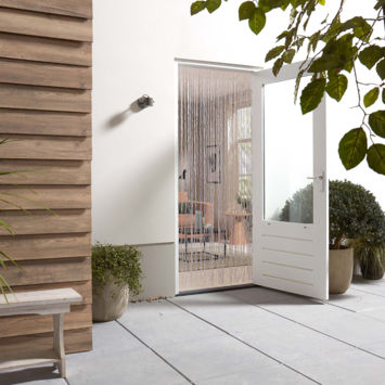 Houd rondvliegende insecten buiten met het Livn vliegengordijn Twinkle. Dit vliegengordijn is geschikt voor naar buiten draaiende (dubbele) deuren en schuifpuien, en kan ook gebruikt worden voor kleinere deurmaten. Het op maat maken van het vliegengordijn is een eenvoudige klus: zaag de aluminium rail op maat en knip de slierten op de gewenste lengte. Montage vindt altijd aan de binnenzijde van de woning plaats. Voor een PVC vliegengordijn is het belangrijk om het eerst een tijdje te laten hangen. Dit gaat het snelst door het gedurende 14 dagen in de volle zon te hangen, zodat het materiaal zachter wordt en mooi recht hangt.