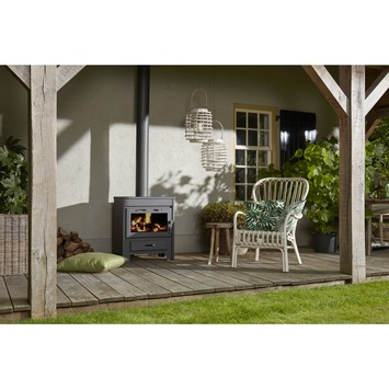 Genieten van knapperend hout en een mooi vlammenspel. Livn houtkachel Boras brengt sfeer, heerlijke warmte en gezelligheid in uw huis. Het voordeel van houtkachels is dat ze een goede en schone verbranding hebben met een zeer hoog rendement. Houtkachels zijn t.o.v. open haarden minder rokerig en zijn veiliger doordat er geen rondvliegende vonken zijn. Alle houtkachels van Livn zijn voorzien van een CE keurmerk. Dit betekent dat de kachels voldoen aan de fundamentele Europese eisen m.b.t. veiligheid, milieu en de gezondheid.Naast de aanschaf van de houtkachel heeft u (afhankelijk van uw situatie) accessoires nodig. Gamma heeft het volgende assortiment aan benodigde accessoires: Rechte enkelwandige pijp in 50 en 100 cm lengte. De diameter van alle afvoerpijpen is 15 cm in diameter. Bocht in 45 ° en 90 °. U kunt afhankelijk van uw situatie twee soorten bochten kiezen. Met twee bochten van 45 ° heeft u ook een 90 ° bocht. Verloopstuk pijp van 120 mm naar 150 mm. De meeste houtkachels hebben in hun afvoeraansluiting een diameter van 120 mm. De afvoerpijpen hebben een diameter van 150 mm. In deze gevallen dient u een verloopstuk te gebruiken. Rozet voor wandafwerking Om de afvoerpijp welke in de muur verdwijnt netjes af te werken, kunt u een wandrozet plaatsen. Gebruik bij een houten, laminaat of tapijt vloer altijd een vloerplaat. GAMMA heeft een vloerplaat van 60 x 60 x 0,1 cm in haar assortiment. Een pooksetje bestaande uit een houder, tang, schop, borstel & pook.
