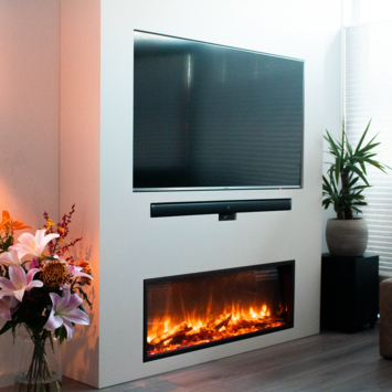 De Livn Noville inbouwhaard is een brede elektrische haard. De zwarte haard heeft 3D LED vlammen en je kan verschillende kleuren instellen. Daarnaast heeft de inbouwhaard ook 2 warmte instellingen. Namelijk 1000 en 2000 Watt, je krijgt het dus ook daadwerkelijk warm van de haard. Zo creëer je zelf een warme sfeer in huis. De elektrische haard heeft kiezelstenen en houtblokken om een realistisch gevoel te geven aan de haard en wordt geleverd met een afstandsbediening. De haard kun je zelf eenvoudig inbouwen in je huis en is buitenmate geschikt voor moderne woningen door de beperkte diepte van de inbouwhaard. Kortom, de Livin' flame inbouwhaard is een goede keuze voor in huis.