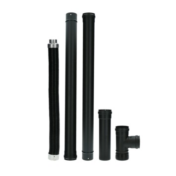 Deze aansluitset is bedoeld om uw Livin’ flame pelletkachel aan te sluiten. De set bevat voor de meest voorkomende situaties materiaal om uw pelletkachel zelf te plaatsen (tot aan een evt. bestaand of nieuw te plaatsen rookkanaal in uw plafond). De set bestaat uit 2 enkelwandige pijpen van 100 cm (Ø 80 mm), een uitschuifbaar telescoop element (6-25 cm), een t-stuk met condensatiedop voor aansluiting van de kachelpijp op de pelletkachel en een aanzuigslang (Ø 50 mm; uitrekbaar tot 1,5 m) voor aanvoer van verse lucht van buitenaf. De pijpen zijn voorzien van een siliconen afdichtring. Voor aansluiting op een bestaand rookkanaal in uw woning is deze set te combineren met een apart verkrijgbaar verloopstuk.