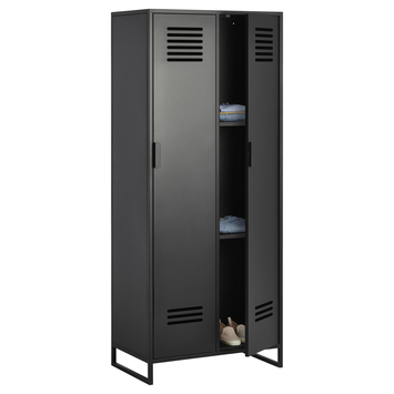 Als je op zoek bent naar een blikvanger voor je interieur, hoef je niet verder te zoeken. Deze kast past perfect in je trendy interieur. De kast heeft 2 legplanken per kant en een strakke afwerking. De lockerkast is onderdeel van de Jasonserie bestaande uit lockerkast 2-deurs, lockerkast 1-deurs, nachtkastje, dressoir en sidetable.