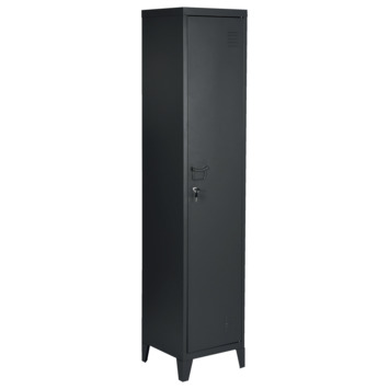 De lockerkast Rico hoog grijs is een stoere locker van 1,79 cm hoog. Door de grijze industriële look past de locker thuis in elk modern interieur. Gebruikt de locker als opslag in de hal of als kledingkast voor je trendy slaapkamer. De locker is gemaakt metaal en heeft een sleutelslot waarmee je de kast op slot kan doen. In de locker zitten drie planken. De lockerkast Rico maakt onderdeel uit van de Rico serie, deze bestaat uit meerdere lockerkasten van verschillende hoogtes.