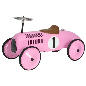 Geschikt voor de jonge coureurs vanaf de eerste stapjes. In en om het huis kan uw kleine zich oefenen in beweging. Op deze coole en strakke loopauto kan de telg al zijn of haar energie kwijt. Urenlang speelplezier zijn voor zowel binnen als buiten gegarandeerd. Deze loopauto is voorzien van metalen wielen en rubberen banden en een kunststof zitting. Speelgoed wat geschikt is als verjaardagscadeau maar ook als woonaccessoire. Van deze roze racer in retro-uitvoering wordt iedereen blij. Deze zilveren racer is volledig van metaal. Eenvoudig in elkaar te zetten en te monteren. Uw wurm kan opstappen en karren maar! Wielen: Rubberen banden op stalen velgen voorzien van metalen wieldoppen. Stuur: metalen stuur. Zitting: Kunststof. Zithoogte: 28 cm. Materiaal: metaal en kunststof. Veiligheidskeurmerk: CE-keurmerk.