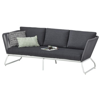 Heel leuk ontwerp met het gespannen draad en metalen onderframe. Blij dat we een lekker zittende bank hebben, wat niet gemaakt is van hout of rotan..