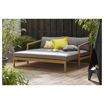 Het tuinmeubel is 67,5 centimeter hoog, 168 centimeter breed en 90 centimeter diep. Wanneer de bank is uitgeschoven, is deze 154 centimeter diep.
