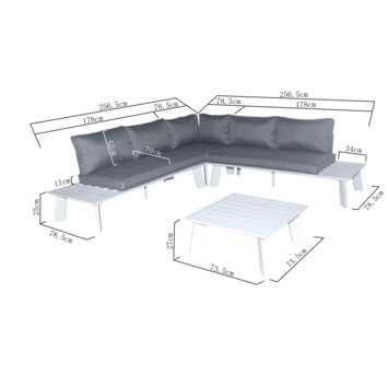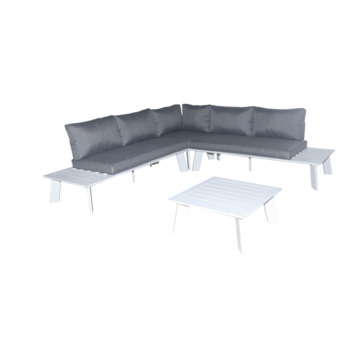 De Loungeset Amily is een moderne loungeset die elke tuinfeest naar een hoger niveau tilt. Dit prachtige en moderne tuinmeubel is gemaakt uit gemakkelijk te onderhouden aluminium en bestaat uit grote hoekbank voor 5 personen en een tafel in het wit. En de kussens? Die krijg je er ineens bij! Wedden dat je vrienden in de rij zullen staan? Zet de barbecue alvast klaar, ontkurk een fles of twee en geniet van een gezellige babbel in de buitenlucht. Tip: ook beschikbaar in antracietkleur.