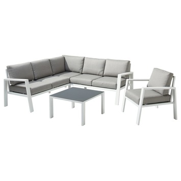 Het tuinmeubel is 73,6 centimeter hoog, 193 centimeter breed en 193 centimeter diep. De salontafel is 41 centimeter hoog, 70 centimeter breed en 70 centimeter lang.