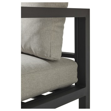 De set wordt geleverd inclusief grijze rug- en zitkussens, die met een coating water- en vuilafstotend zijn. Tevens zijn de kussens waterdoorlatend, wat betekent dat de kussens snel opdrogen mocht er een regenbui overheen gegaan zijn en/of water op zijn gevallen. Het rugkussen bevat een dikte van 25 cm en het zitkussen een dikte van 8 cm. Hierdoor kun je comfortabel van de set genieten.