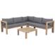 Lekker genieten van het heerlijke weer of buiten even relaxen? Dan is een loungeset ideaal. De Loungeset Frejus bestaat uit een hoekbank, geschikt voor 5 personen, inclusief een moderne salontafel. De set is gemaakt van hout, waardoor het een natuurlijke uitstraling heeft.
