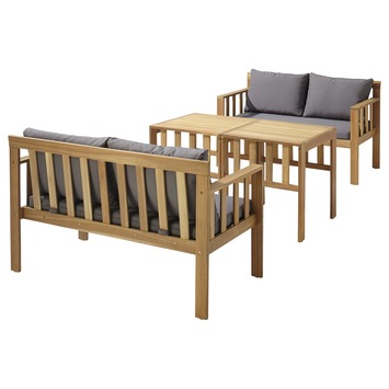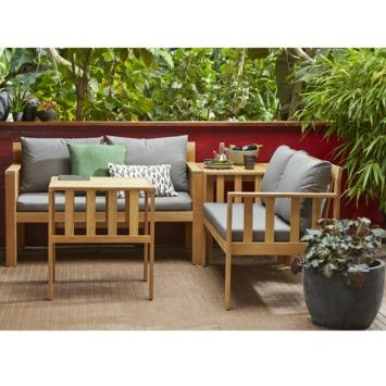 De multifunctionele loungeset Medan high dining is gemaakt van acacia hout. Dit geeft de loungeset een natuurlijke uitstraling. Acacia hout is bijzonder geschikt voor buitenmeubelen omdat het een sterke en duurzame houtsoort is die nauwelijks splintert en weinig onderhoud nodig heeft. Deze set is geschikt is voor 4 personen. De set bestaat uit 2 tweezitsbankjes en 2 bijzettafels. Door de losse onderdelen op verschillende manieren neer te zetten creëer je de perfecte loungeset voor elk moment. De loungeset wordt geleverd inclusief bijpassende kussens. De stevige, dikke kussens zorgen voor een optimaal zitcomfort. Kortom, met deze loungeset van Wakefield kun je heerlijk genieten van een warme zomerdag.