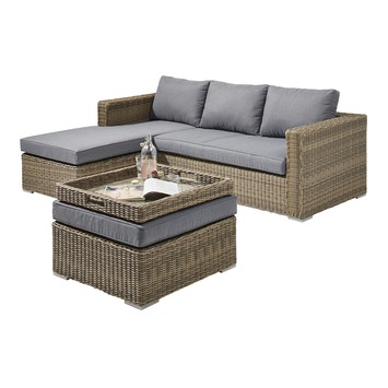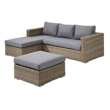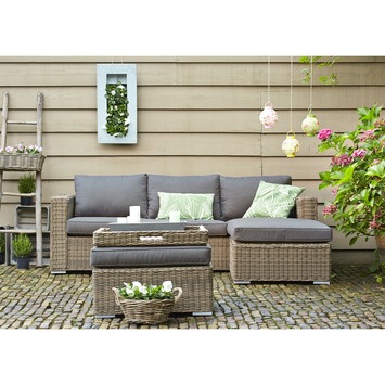 De loungeset Nevada is gemaakt van bruin wicker. Dit geeft de tuinset een moderne en natuurlijke uitstraling. Het materiaal is ook weerbestendig, u kunt alles dus gewoon buiten laten staan.