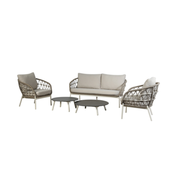 De beige kussens bieden een zacht contrast met het strakke metalen ontwerp en zorgen voor extra zitcomfort. Met een breedte van 160 cm en een diepte van 73,5 cm is deze set perfect voor kleinere buitenruimtes. Dankzij het duurzame materiaal en de praktische afmetingen geniet je jarenlang van deze stijlvolle loungeset.