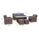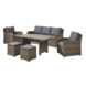 De loungeset Toscane is gemaakt van bruin wicker. Dit geeft de tuinset een moderne en natuurlijke uitstraling. Het materiaal is ook weerbestendig, u kunt alles dus gewoon buiten laten staan. Loungeset Toscane bestaat uit een bank, 2 fauteuils, 2 hockers een tafel en kussens. Deze loungeset combineert het functionele karakter van een eetset met het relax karakter van een loungeset. In deze high dinningset kunt u heerlijk ontspannen. Doordat de zit hoger is, is hij ook uitermate geschikt om aan te eten. Het tafelblad is van aluminium. Het aluminium is onderhoudsvriendelijk en heeft een hout-look. De hockers passen precies onder de tafel, waardoor u gemakkelijk met meerdere mensen aan deze set kunt genieten.