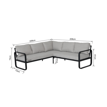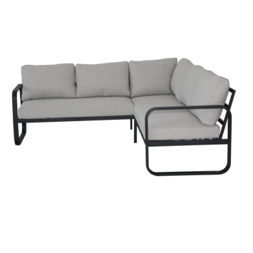Het hoekontwerp geeft overzicht en maakt het makkelijk om iedereen een plekje te geven. Het zwart frame past bij verschillende tuinmeubels en accessoires.