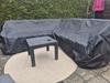 De loungesethoes in L-vorm is een beschermhoes die je over je hoekvormige loungeset legt om die te beschermen tegen regen en beschadigingen. Je legt de hoes over de set wanneer je klaar bent met gebruiken en haalt hem er weer af als je buiten wilt gaan zitten.