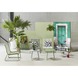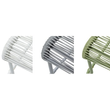 De stoel is verkrijgbaar in groen, maar ook in groen of wit. Zo kunt u vrolijk combineren voor een kleurrijke set in uw tuin.