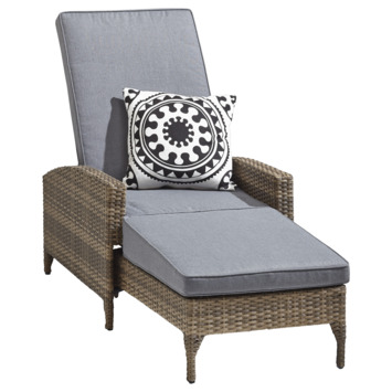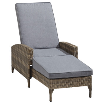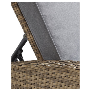 De loungestoel Trentino is gemaakt van grijs geschuurd wicker en heeft een natuurlijke uitstraling. De stoel heeft een verstelbare rugleuning en een uitschuifbare voetenbank. Dat zorgt voor het ultieme comfort. De loungestoel is compleet, want hij wordt geleverd met een bijpassend kussen. Ideaal om heerlijk uit te rusten in uw tuin of op uw balkon. Het kussen van de Trentino loungestoel is grijs en lekker dik voor extra comfort. De stoel is 1,64 meter lang en ruim een meter breed. Wilt u uw tuin in één stijl inrichten? Kies dan ook voor de Trentino loungeset om uw tuinplaatje compleet te maken.