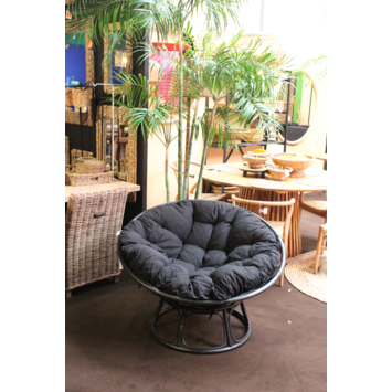 Ontspan in stijl met de Papasan loungestoel in zwart rotan. Dankzij de zithoogte van 50 cm en de ronde, omhullende vorm biedt deze stoel een bijzonder comfortabele zitervaring. Het sterke rotanframe in stijlvolle zwarte tint zorgt voor een robuuste basis en een eigentijdse uitstraling. Het royale zwarte kussen vormt de finishing touch: heerlijk zacht en uitnodigend. Zet hem in je serre, tuinhuis of onder een overkapping voor lange, ontspannen momenten. Omdat de stoel volledig gemonteerd wordt geleverd, kun je hem direct gebruiken. Voor langdurig plezier adviseren we de Papasan alleen binnen of op een beschutte plek buiten te plaatsen.