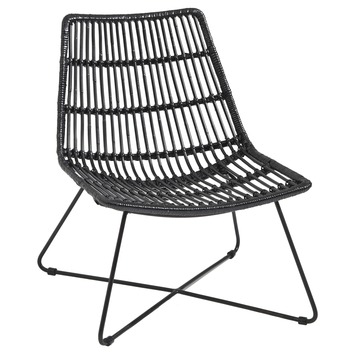 Leuke zwarte rotan loungestoel voor op de veranda of voor een gezellig hoekje in huis. De stoel is gemaakt van rotan en heeft een metalenn onderstel.