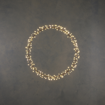 Maak de donkerste dagen van het jaar extra gezellig met deze verlichte krans uit de collectie van Luca Lighting. De krans heeft een sterk, metalen frame met daaraan 108 LED lampjes. Door de zwarte kleur komt de warm witte kleur van de lampjes extra goed naar voren! De speelse manier waarop de lichtjes aan het frame zijn gebonden maakt het geheel helemaal af. De krans is spatwaterdicht en daardoor ook erg geschikt om buiten te gebruiken. Hang de kerstverlichting bijvoorbeeld aan de schutting! De krans is verkrijgbaar in verschillende afmetingen die leuk met elkaar te combineren zijn. Dit model heeft een diameter van 30 cm.