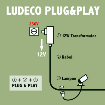 Deze Ludeco tuinspot Laros startersset is gemakkelijk te plaatsen op een plek naar keuze. Het slimme plug & play systeem maakt dit, naast de vele andere voordelen, mogelijk. Gebruik deze richtbare spot als accentverlichting of als sfeerlamp. De zwarte kunststof Laros beschikt over een veiligheidsspanning van 12 volt en een IP waarde van 44 wat deze lamp spatwaterdicht maakt.