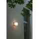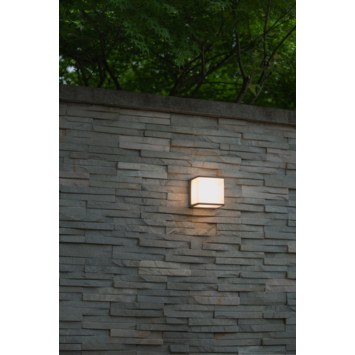 Deze LED-wandlamp in antracietgrijs zit in een kubusvormige houder van gegoten aluminium. Het elegante design springt in het oog en straalt krachtige stralen van warm wit licht uit die de wand verlichten.