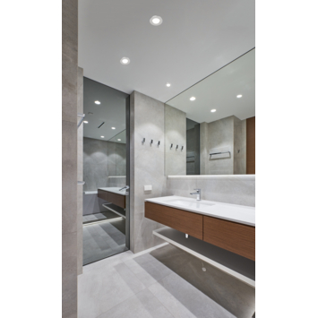 De LUTEC Connect inbouwspot Optima is een van de vele spots uit de collectie. Dankzij de hoge beschermingsgraad IP65 kun je hem in de hele badkamer installeren.De spot is rond en omgeven door geborsteld nikkel. Je kunt zowel het licht dimmen als de kleur van het licht bepalen via de afstandsbediening of via de app, waardoor je eenvoudig de gewenste sfeer kunt creëren.