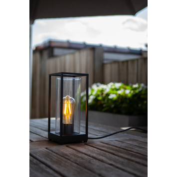 Lutec tuintafellamp Flair in dark grey. De draagbare versie. met een 1,5 meter buitendraad en stekker. zorgt voor een gezellige sfeer op uw tuintafels & terrassen. Wordt geleverd met E27 gloeidraad LED retrofit lampen.