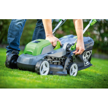 De LUX 20V grasmaaier maakt gebruik van twee 4Ah accu's in serie, hierdoor heb je de kracht van een 40V accu. Het opladen van de twee accu's met de dual-lader kost ongeveer twee uren. De maaier heeft een maaibreedte van 33 cm en wordt aangedreven door een koolborstelloze motor. De maaihoogte heeft vijf verschillende instelbare hoogtes tussen de 25 mm en 65 mm zodat je de optimale hoogte in kan stellen voor jouw gazon. Ook vangt de grasmaaier het gemalen gras op in een makkelijk te legen bak, deze heeft een inhoud van 35L.