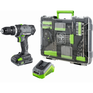 LUX 20V accuboormachine + 2,0Ah accu + lader + koffer met accessoires