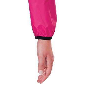 De Mac in a Sac is een makkelijk lichtgewicht nylon ademend regenjack. Het prettig ademende jack (5000gsm) is speciaal ontworpen om klein op te rollen en op te bergen in het bijgeleverde opbergzakje. Het is 100% water- en winddicht (5000mm) dankzij de geplakte naden. Het verlengde rugpand heeft een uniek ‘staycool’ systeem dat zorgt voor extra comfort en reflectiebanden voor betere zichtbaarheid. Ook heeft het jack 2 afsluitbare steekzakken, een tochtstrook achter de rits aan de voorzijde, een aantrekkoord aan de onderzijde en een gevouwen capuchon in de nekkraag. Het junior jack in een fuchsia kleur is verkrijgbaar voor kinderen met een leeftijd van 11 tot 13 jaar. U kunt de jas eventueel ook in een andere maat of kleur verkrijgen.