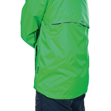 De Mac in a Sac is een makkelijk lichtgewicht nylon ademend regenjack. Het prettig ademende jack (5000gsm) is speciaal ontworpen om klein op te rollen en op te bergen in het bijgeleverde opbergzakje. Het is 100% water- en winddicht (5000mm) dankzij de geplakte naden. Het verlengde rugpand heeft een uniek ‘staycool’ systeem dat zorgt voor extra comfort en reflectiebanden voor betere zichtbaarheid. Ook heeft het jack 2 afsluitbare steekzakken, een tochtstrook achter de rits aan de voorzijde, een aantrekkoord aan de onderzijde en een gevouwen capuchon in de nekkraag. Het jack is verkrijgbaar in de maat XS in een varengroene kleur. U kunt het jack eventueel ook in een andere maat of kleur verkrijgen. De jas is zowel door vrouwen als mannen goed te dragen.
