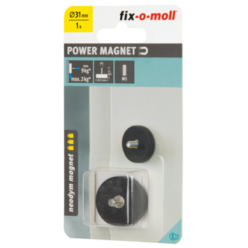 Magneet Neodymium schroefdop met bout en rubber 31mm