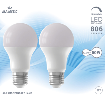 Majestic LED SMD 10W 806lm E27 wit dimbaar duopack