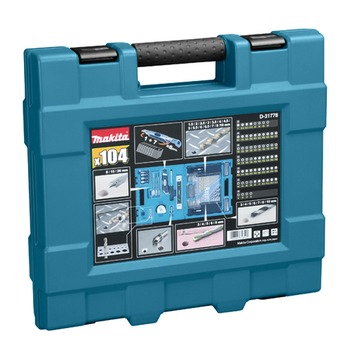 De Makita Bit- en Borenset D-31778 is voorzien van een 104-delige bit en borenset. Met deze set bent u voorbereid op elke klus. Deze set bevat verschillende professionele, volledig geslepen accessoires met diverse maten hout-, steen- en metaalboren, doppen, schroefbits en diverse andere accessoires. Met de Makita 104-delige Bit- en Borenset D-31778 ben je dus elke klus de baas.