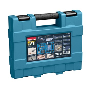 De Makita bit en borenset D-33691 is 71-delig. Deze set is eigenlijk veel meer dan een bit en borenset alleen, naast de volledig geslepen hout-, metaal- en steenboren en diverse bits zitten er in deze set ook accessoires zoals een rolbandmaat, uitschuifmes, schroevendraaier met bithouder.